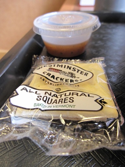 Dressing that I didn’t touch, saltines that I did.