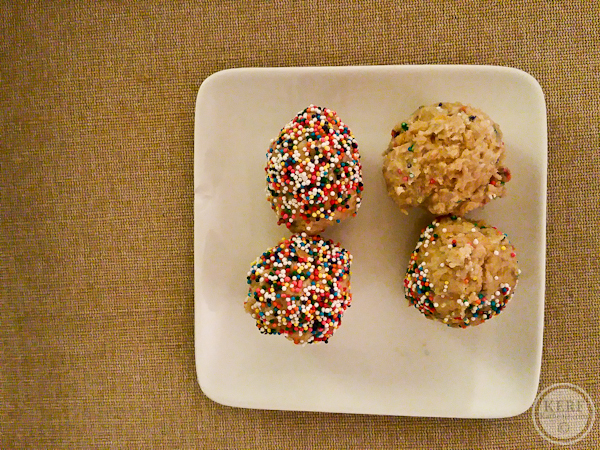 For our Bachelor viewing party I made not one but two of Kylie’s Single Serving Cookies – both cake batter flavor! The chocolate chip ones were baked and gooey but the no bake balls were our favorite – so battery! I also just discovered Kylie’s Cookie Dough e-book which I bought late last night. Can’t wait to try it! Her creations are genius. Both of these cookies are made with real food and are CHICKPEA based!
