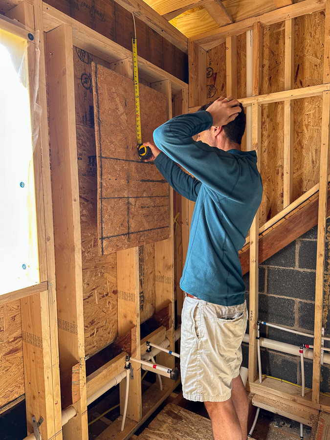 Deciding the perfect height for our mirror and fixture. Math is hard!