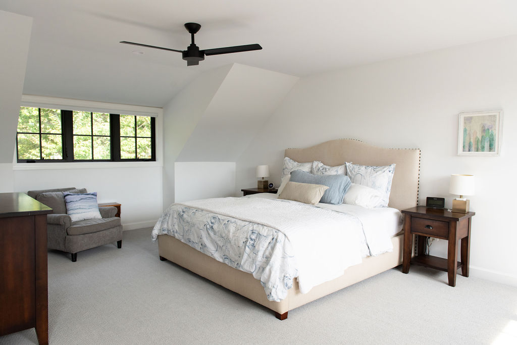 We don’t have a small living room yet there were zero overhead lights in there! We had three lamps on alexa voice activated switches that light the room, and the new dining room light will do double duty for living room light too. However, we are not adding any overhead lights here – just a fan! We don’t love fans with lights in them, so we’re choosing a simple MinkaAire Roto 52″ Indoor Ceiling Fan. This is the indoor version of the fans we have on our screened-in porch.