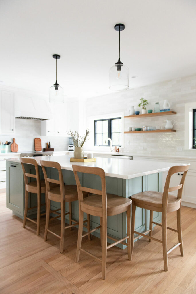 We recently did a reno and our designer advised against the ‘exposed bulb’ trend. In her experience, the exposed bulb can be harsh on the eyes when you have the lights on in the evening. She said this was especially true for things at eye level, like a pendant light over the island or a chandelier over the table, where you’d basically have an exposed bulb right in front of your eyes. We reluctantly followed her advice and I am SO glad we did. An opaque (or semi-opaque) shade helps direct the light better, hides dust and fingerprints, and is so much easier on the eyes.