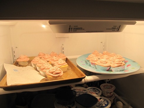 (BTW, the recipe floating around online isn’t the same as in the Amy Sedaris book. Her recipe uses regular butter, 1/4 tsp. salt, and 1.5 cps. sugar. That would be fewer dry ingredients, which might make the cupcakes moister…)