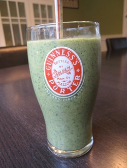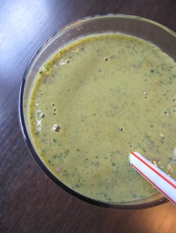 Despite my bursts of snacktime sugar and buttah, I was hungry deep down and made a kale + peach + chia + soy milk + ice smoothie for cocktail hour to hold me over until dinner at Kelsey‘s.