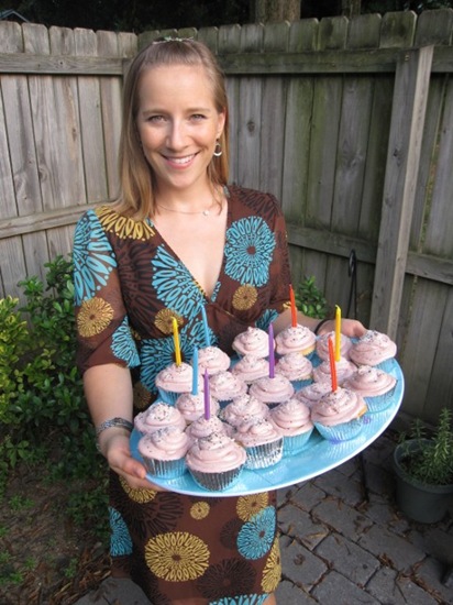 Thanks to all for the cupcake + dress compliments! Dress is from Loehmann’s, so it’s probably not track-down-able.