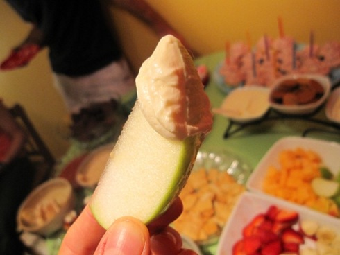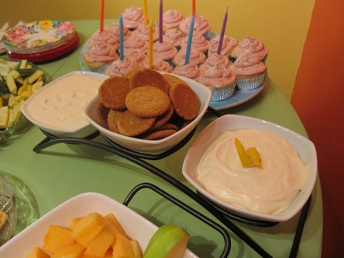 Ashley made mascarpone + cream cheese dips – lemon and regular for fruit dippers. OMG – fabulous. Between this and the buttercream, I ate waaaay too much heavy, delicious cream!
