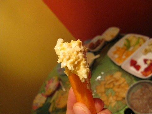 When trying to watch what I eat, those appetizer parties kill me. I just keep going back and getting another cracker dipped in this or a piece of broccoli dipped in that…