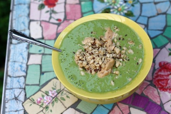 - 3/4 cup coconut milk (LOVE this stuff BUT I wish I were higher in protein. The main reason I add milk to my smoothies is for the protein, so organic cow and soy milk make sense, but almond milk, rice, hemp, coconut – where’s the substance here!?)