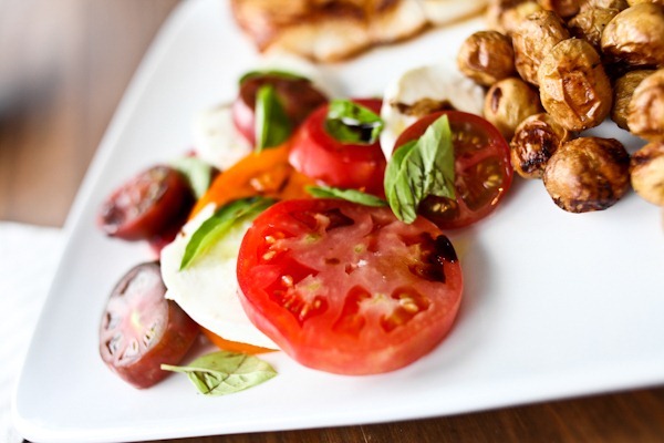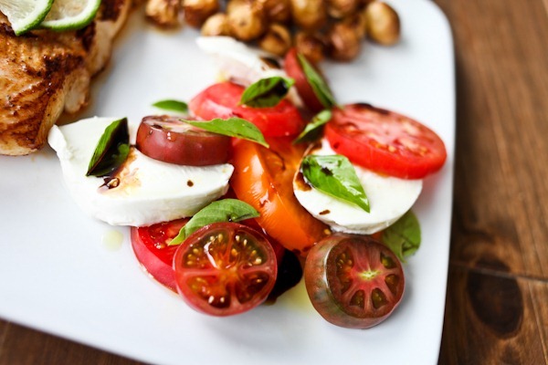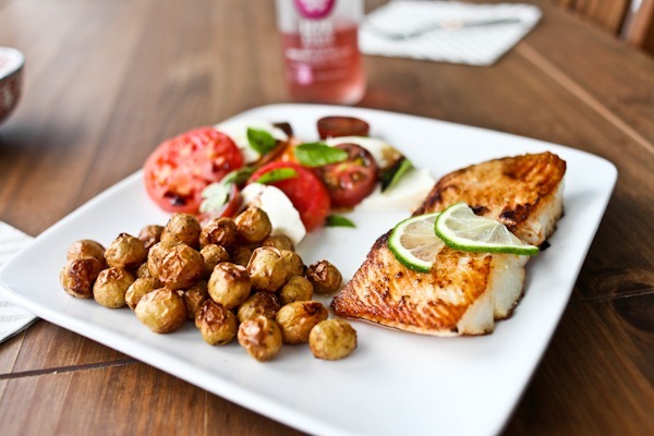 OMG that dinner looks SO delicious! Every part of it I am almost 100% sure I would love! Th eroasted veg, the caprese salad, and ESPECIALLY the fish! It looks like its cooked perfectly!!!