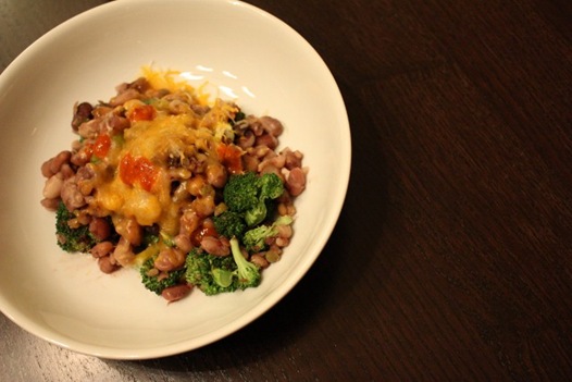 Once home from soccer and showered at 8:15, I heated up some fridge items for dinner. (One major con to soccer is the time of day, which means 3 nights in a row we don’t have family dinners. Since it’s only thru October though, I’m still going to do it, and Matt said he doesn’t mind, but it will make for less gourmet blog dinners during the week. Quick + easy for sure though!)