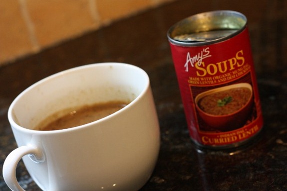 Matt sheepishly asked if he could have one of the Amy’s soups I was sent to review. I said sure as long as he gave me a bite to taste test!