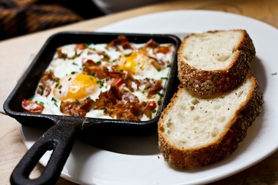 I love how the baked eggs are served right in the pan! I’ve never seen that before!
