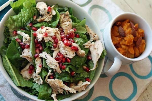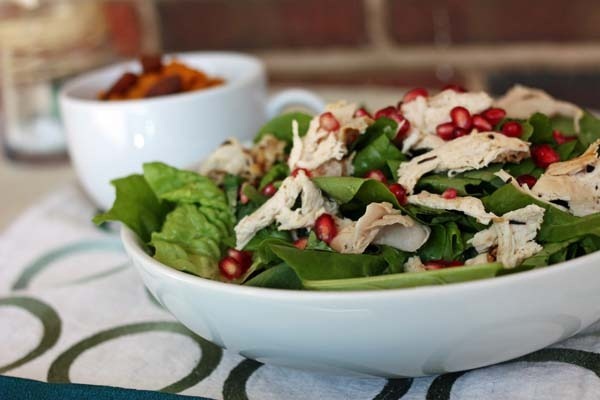 Your salad looks fab! Wish I liked pom seeds, they’re too woodsy to me. However, I LOVE pom juice!! 🙂