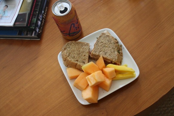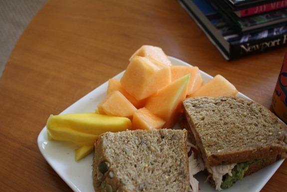 Matt made us some Applegate Farms turkey sandwiches with avocado and dijon mustard and tomato on Great Harvest Dakota bread.