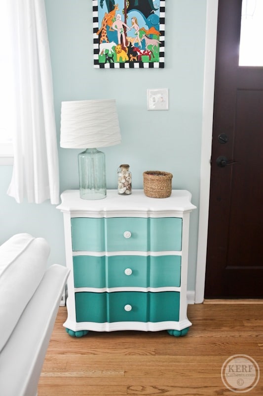 I painted it with Annie Sloan Chalk Paint years ago. I mixed teal and white to create an ombre effect. (You know, when ombre what SO COOL back in like 2012?!)