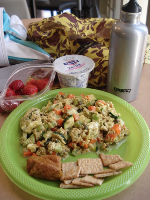 Now that’s more like it! Today’s lunch was virtually the same amount of calories as yesterday’s but I was SO much happier when I finished. First off, it took me like 3 times as long to eat it all, and it included a bigger variety of tastes 🙂