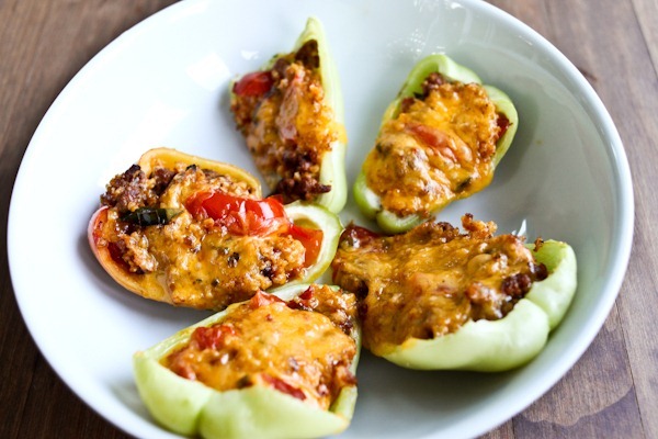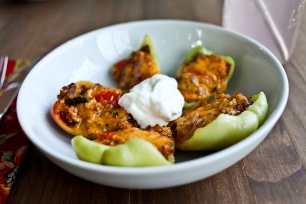 I am in love with stuffed peppers- all kinds of flavours and variations!! these look amazing and although i dont eat meat I am sure a spiced soya mince + chipotle chili filling would taste just as amazing as these look!