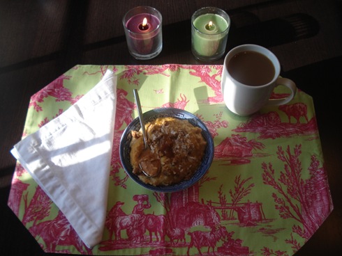 Hope you’re feeling better. Lovely bowl of oats on your new placemat. So warm.