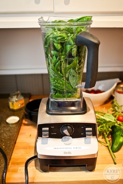 I think my jaw dropped from the amount of basil you had!! What a GREAT idea to do both in the vitamix. I busted out my food processor two weeks in a row to make pesto and it’s just such a pain in the a$$ to get that thing and all its parts cleaned after using it! I wish I could find those fire roasted sweet red peppers here, but I just know that I most definitely never will lol. I’ve never tried making a gazpacho, but I want to!!