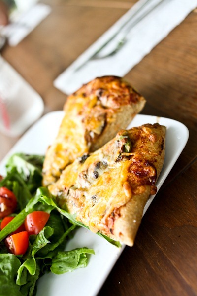 [Bitter bolted] garden salad on the side! With a homemade dressing made from 1/4 cup black cherry balsamic (from the Boston Olive Oil Co), 2-3 tbsp olive oil, 1/4 tsp salt, 1 tsp honey, 1 heaping tsp dijon mustard and 1/2 tsp dried rosemary.