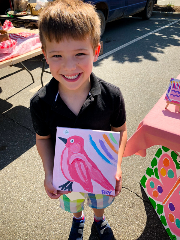 We showered and dressed and headed to the farmer’s market where mom was. She sold 10 paintings! You can learn more about her artwork here. Each painting has a story.