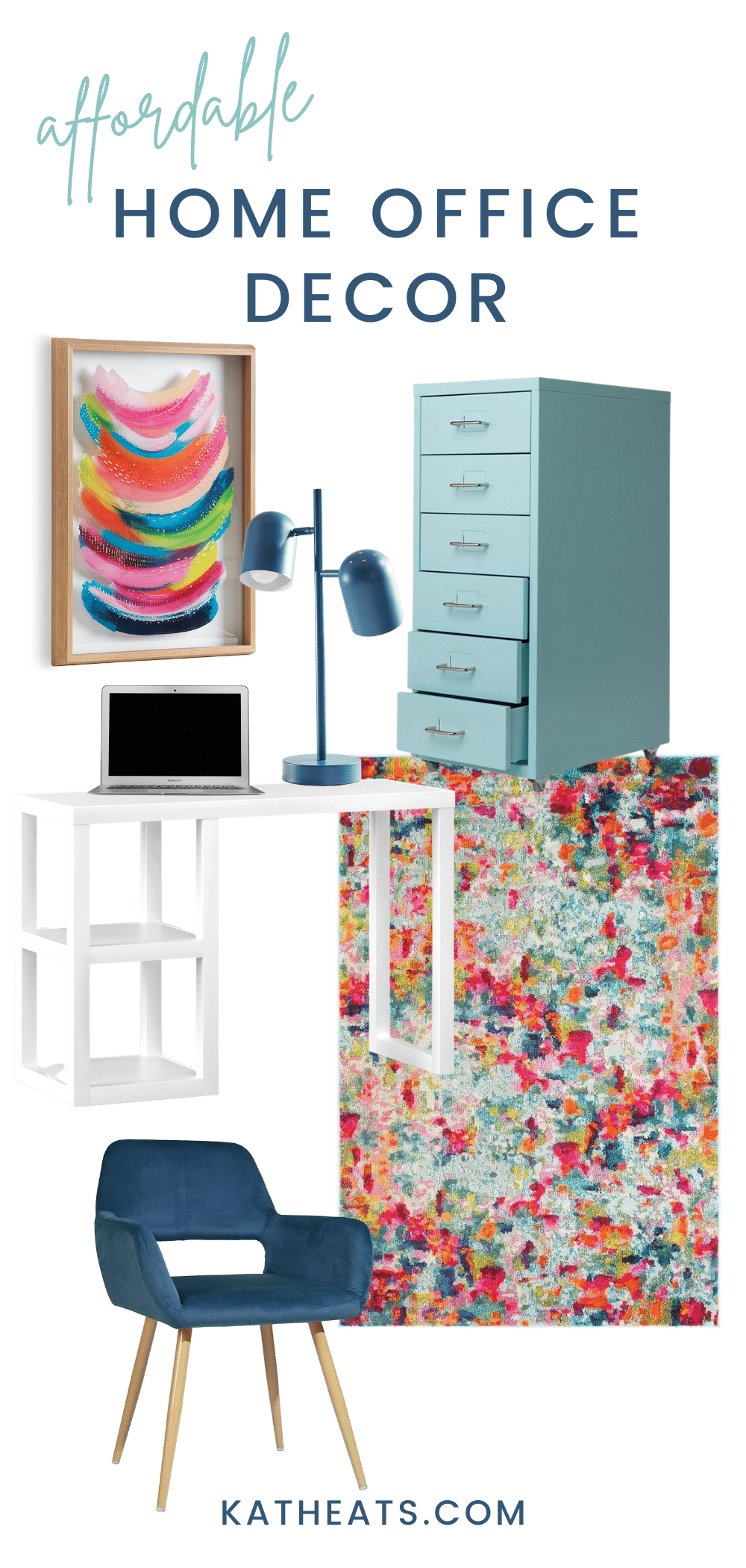 Today I’m sharing some more affordable home office items, from classic white writing desks and blue velvet chairs to $10 mini lamps and cheerful wall décor.