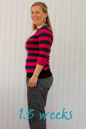 13 weeks is when I ran my half marathon . . . and it’s also when I first noticed the very slightest bit of curve in my stomach. Very exciting times 🙂 Also, I had wicked bad morning sickness until like 16 weeks and eggs . . . EGGS . . . they were awesome. I think the more protein you eat, the better. At least in my case. <3