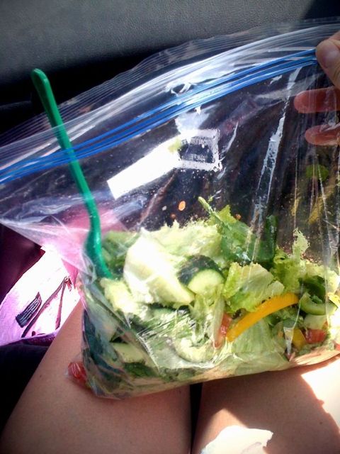 I never though of bagging salad for road trips! So smart! I will definitely be doing that in the future.
