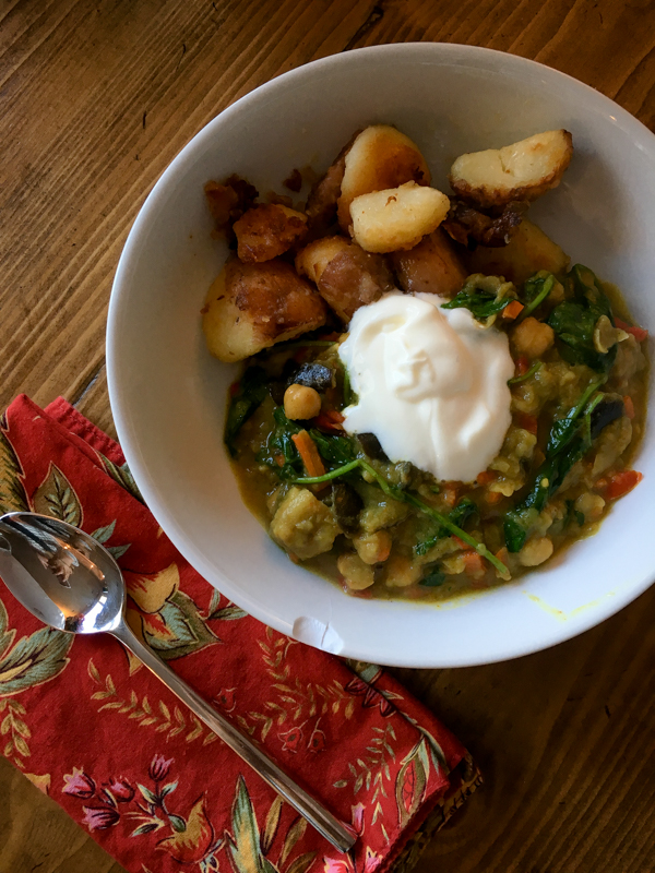 Chickpea curry with English roasted potatoes – a Matt specialty!