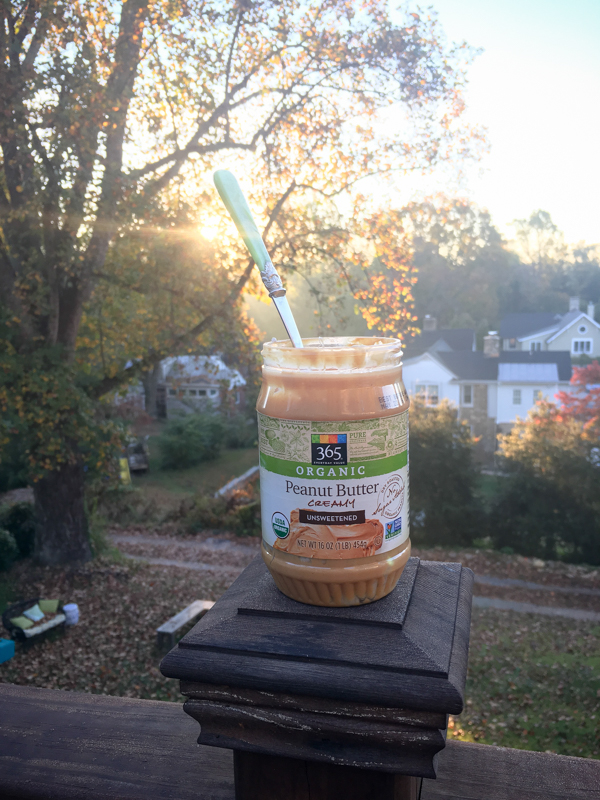Whipped banana oatmeal in a jar on a gorgeous fall morning –