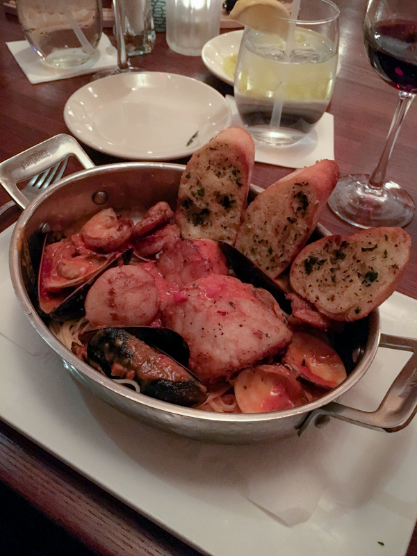 Birthday dinner at Travinia with mom, dad, M and M! I had a lemon kale salad and a cioppino with a delicious black cod featured inside.
