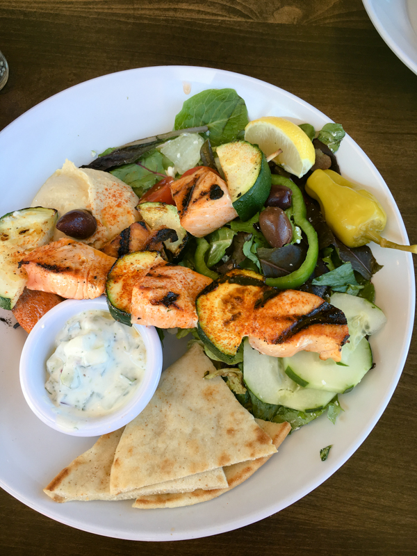 Lunch out with Sarah and the kiddos at Zoe’s Kitchen – another favorite lunch spot with a great healthy menu! I get the salmon kebobs that comes with a side salad, hummus and pita.