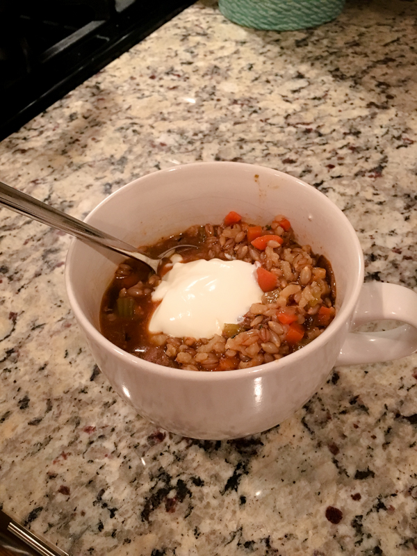 Barley and beef soup! Enjoyed on a dark and stormy night.