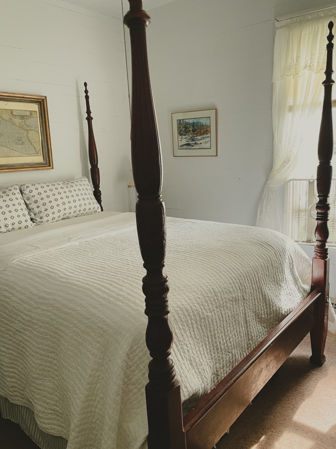 The house is frozen in time in the most charming way. It reminded me so much of the house I grew up in. From the box fans in the window (there is no AC!) to the antique furniture to the large porches with a dozen rocking chairs, we definitely had that “lost in time” feel. There’s also no internet and cell service is spotty at best, so unplugging was easy to do.