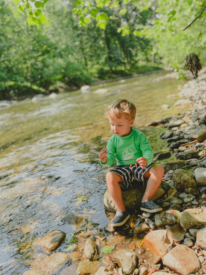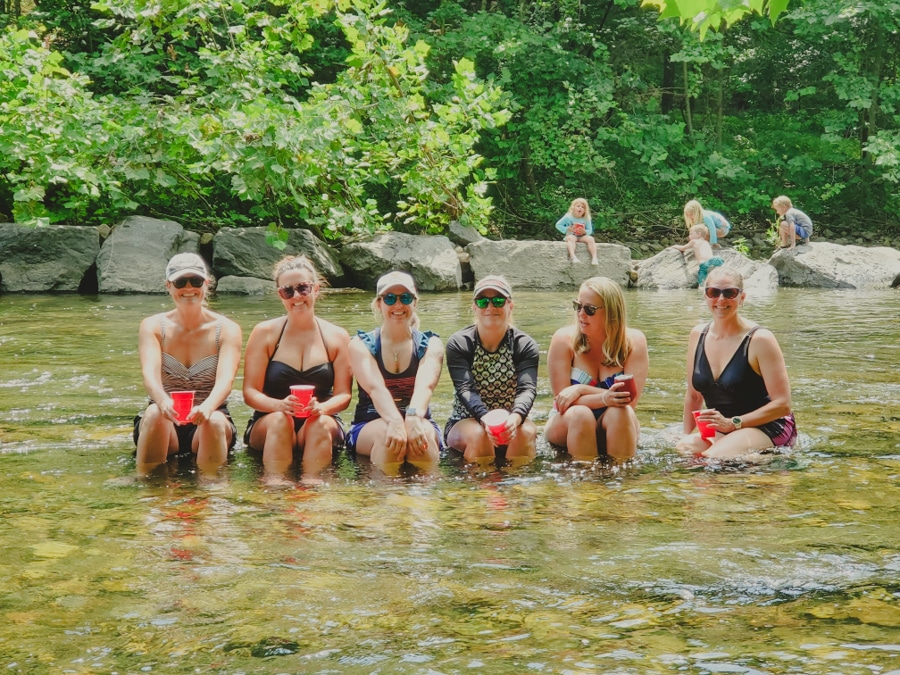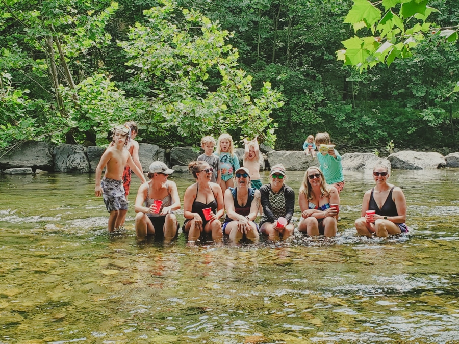 On Saturday after breakfast we drove about a mile away to a river to do some “swimming” aka wading. The water was crystal clear! We saw crayfish, minnows, and poison ivy – luckily no snakes!