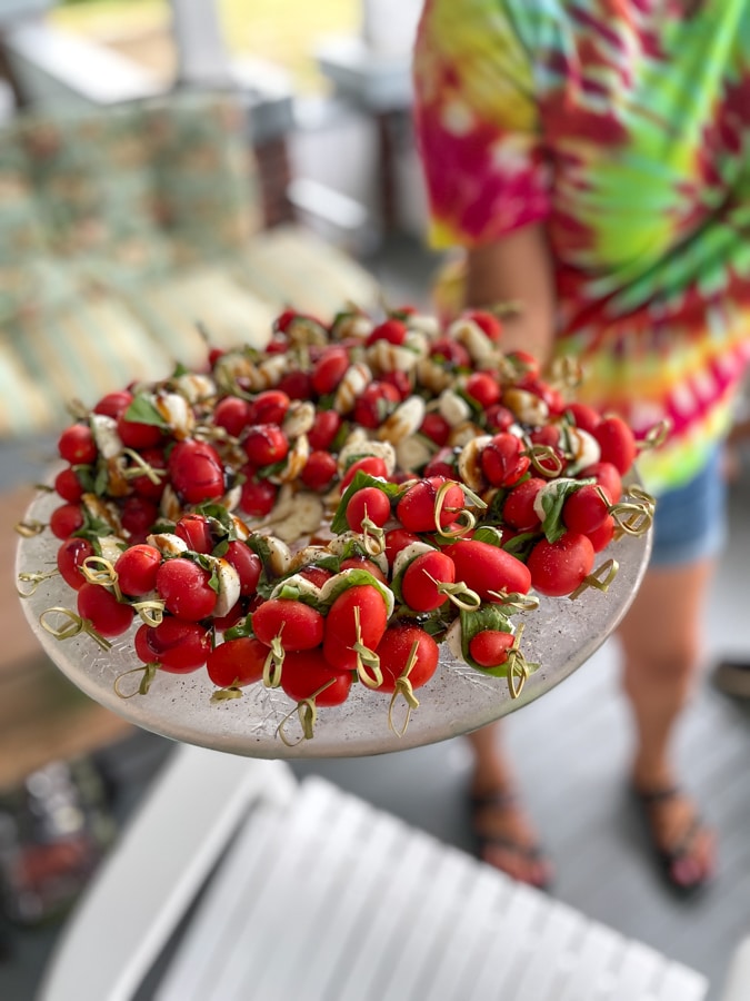 Pancakes cooked on a grill griddle for a crowd! We had plenty of fresh summer fruit too.