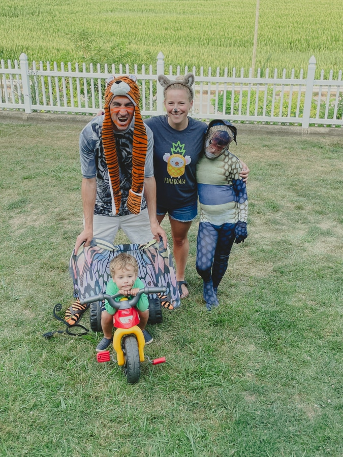 On Saturday night we had a costume party and were tasked to wear an animal costume that started with the same letter as our first name!