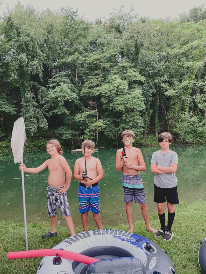 Mazen in particular had an absolute blast running around with this pack of boys. The fished, they sailed down the slip n slide, they tubed the river, and played “boat” in the pond.