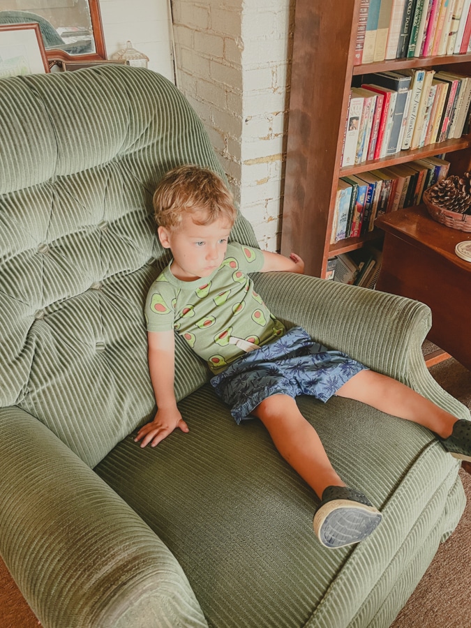 I was most worried about sleeping without air conditioning, but the box fans worked their magic and I wasn’t hot at all. (Flashbacks to growing up when we didn’t have AC in our bedrooms until I was in middle school!!) Birch slept in a crib in our room (luckily he slept all night!) and Mazen was up in a bunk room with his buddies.