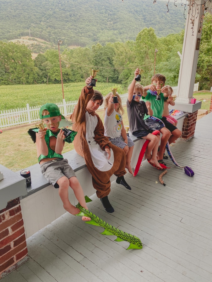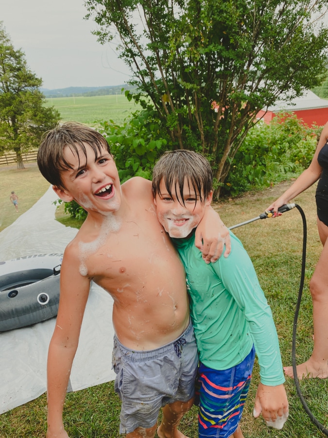 We made an epic slip n slide with a giant roll of plastic that provided hours of entertainment for the kids!