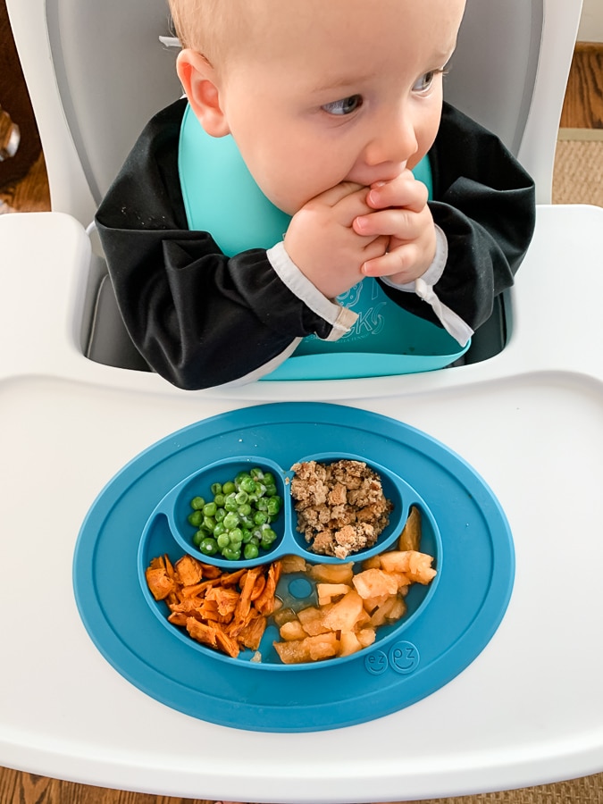 I also taught him how to eat little peas and cantaloupe. He’s not sure about either one. Gobbled down the sweet potatoes and bread though!