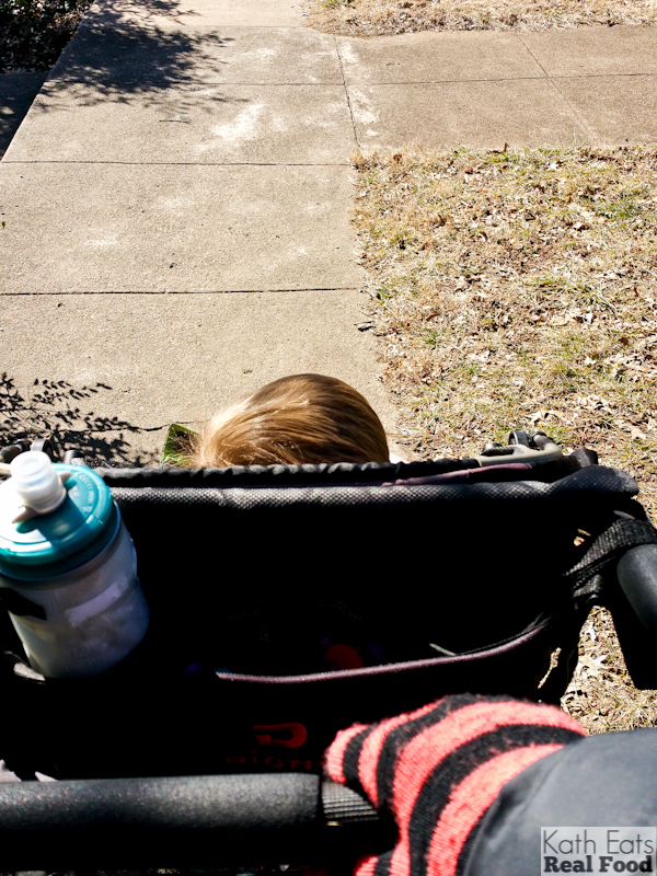 After breakfast I asked Mazen if he wanted to go for a walk or play outside. He said “Mommy I want to go on a walk with you.” So sweet! We went for a short stroller walk and then finished up in the sunshine playing outside.