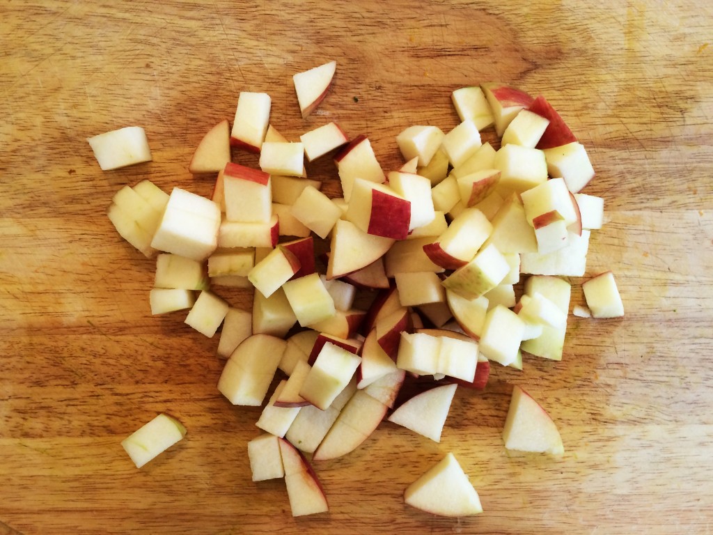 Lastly, a tasty honeycrisp apple. Chopped into bite sized pieces.