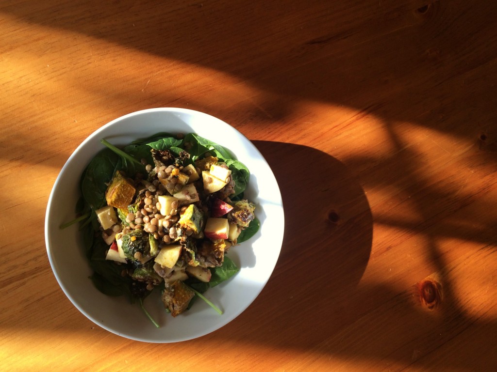 Toss the squash, Brussels, and apples together. Mix in the lentils. Then, drizzle with as much dressing as you prefer.