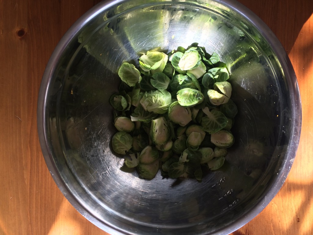 - 1 lb of Brussles Sprouts, cleaned, trimmed, and halved