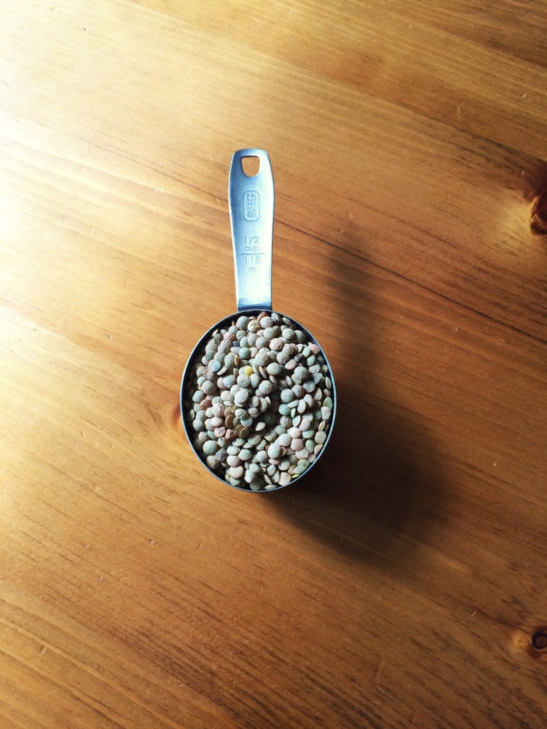 To assemble the rest of the salad, you can simply use leftovers, or make everything fresh. I started by preparing lovely lentils. Cooked according to directions.
