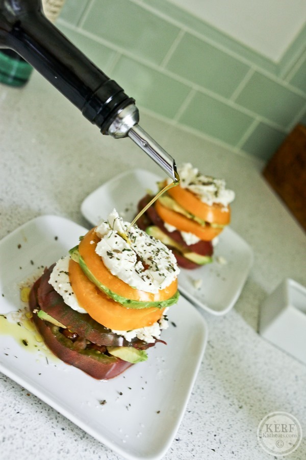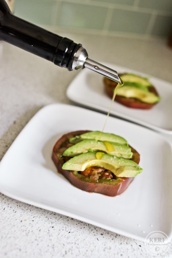 I had this stack for lunch and it was very filling! All that healthy fat from the avocado and olive oil kept me full all afternoon.
