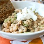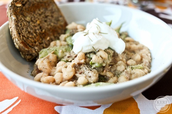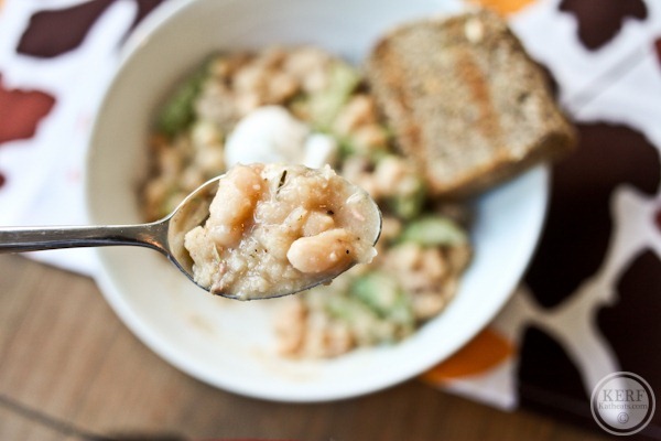 Tonight’s dinner was a Matt creation! He was craving a crockpot bean soup and created this recipe using a ham steak from Babes in the Wood and a pound of great northern beans.
