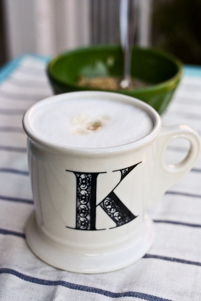 i have the same “K” mug! although i’m still working on that beautiful froth. there’s nothing like the comfort of simple whipped banana oats… sound perfect for the rainy morning here in chicago.