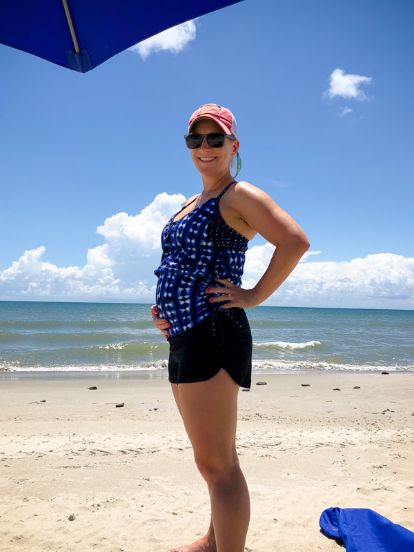 I walked into Mazen’s room the other night and Thomas commented: “I think you grew three weeks’ worth overnight.” So much of how I look depends on my posture, and at night after dinner I tend to relax it all out. I can still suck it all pretty far back in though, so some days I feel much less pregnant than others. I think I definitely had a growth spurt while I was at the beach. I was talking to a friend at the pool and saying, “I still don’t feel like I look pregnant” and she said, “You definitely do!” and when I caught an accidental glimpse in a mirror later she was totally right – I looked huge! Also: when I see photos of me pre-pregnancy, I can’t believe how slim I looked. I think I’m just getting so used to my bump that I don’t really notice it as much! (Hilariously, I saw that I wrote the same thing in my 24 week post with Mazen!)