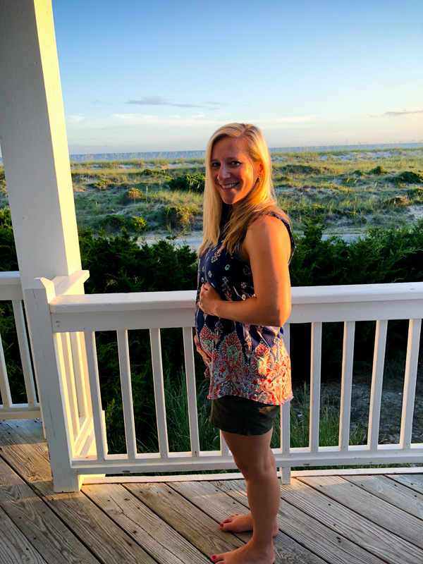 My SI joint is actually WAY better (thank you, chiropractor). In fact, I haven’t even thought about it at all in the past two weeks. I’m actually thinking that it was my high-impact workouts that was bothering it more than anything. Instead, I had aching glutes for a week or two. I would wake up feeling like my glutes lifted 100 pounds all night – they were just soooo tired. But I think I figured out what the cause of that was: the pillow between my legs! When I used a super thin pillow at the beach my aches when away. My thicker pillow at home must have been keeping my legs too far apart to totally relax. I’ve also tried sleeping on my stomach on the Snoogle since we last spoke, and that was fun for a bit, but I’m finding that this week just having the minimum pillow and otherwise halfway sleeping on my stomach (with a leg propped to the side to allow room for baby) is working best in the moment.